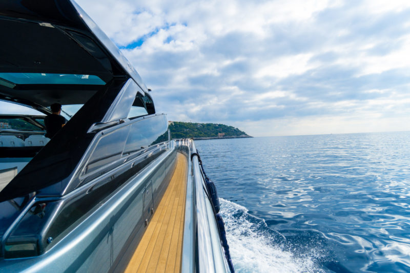 - Manual sunshade with carbon poles (bow area)