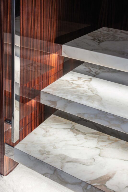 The magnetic allure of her design is all in the harmony between past and present, in the concept that unites innovative materials like carbon with traditional stylish features from mahogany inlay to decorative steel.